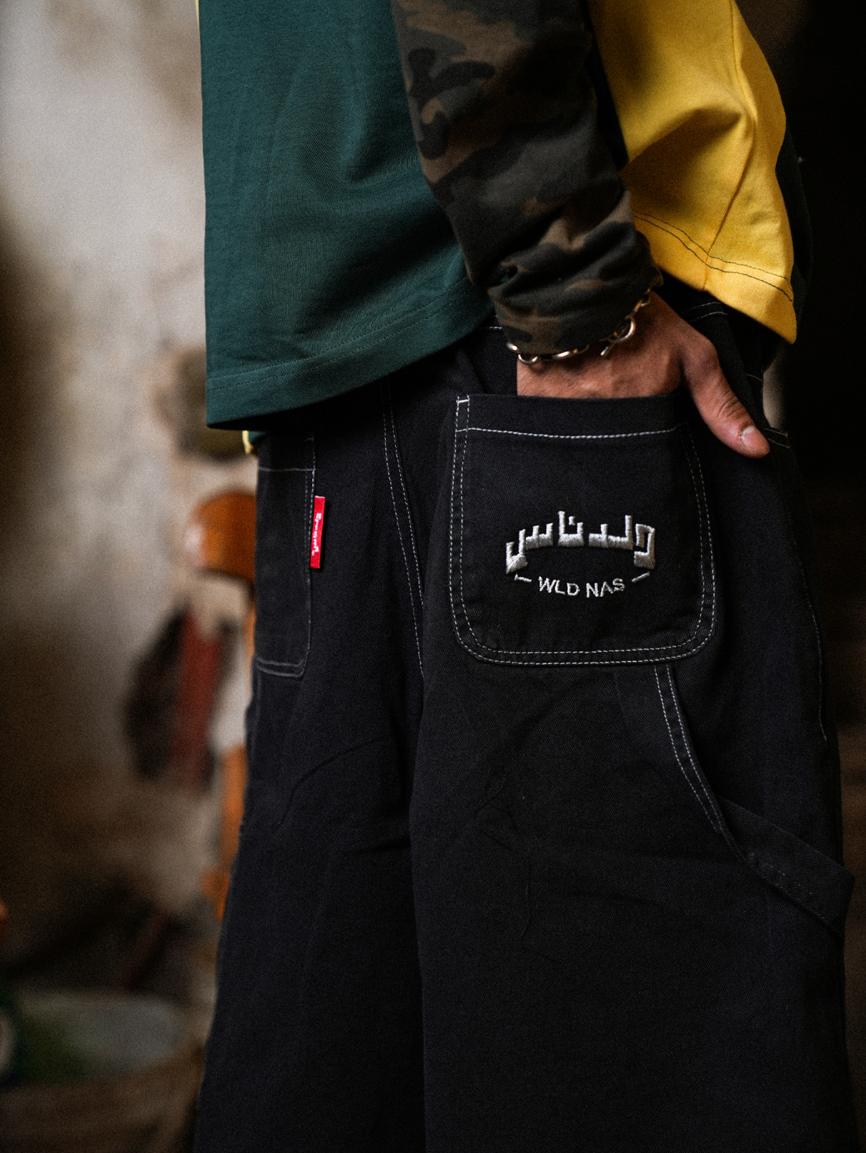 Color. Black with white stitching Embroidery: WLD NAS logo on the back pocket