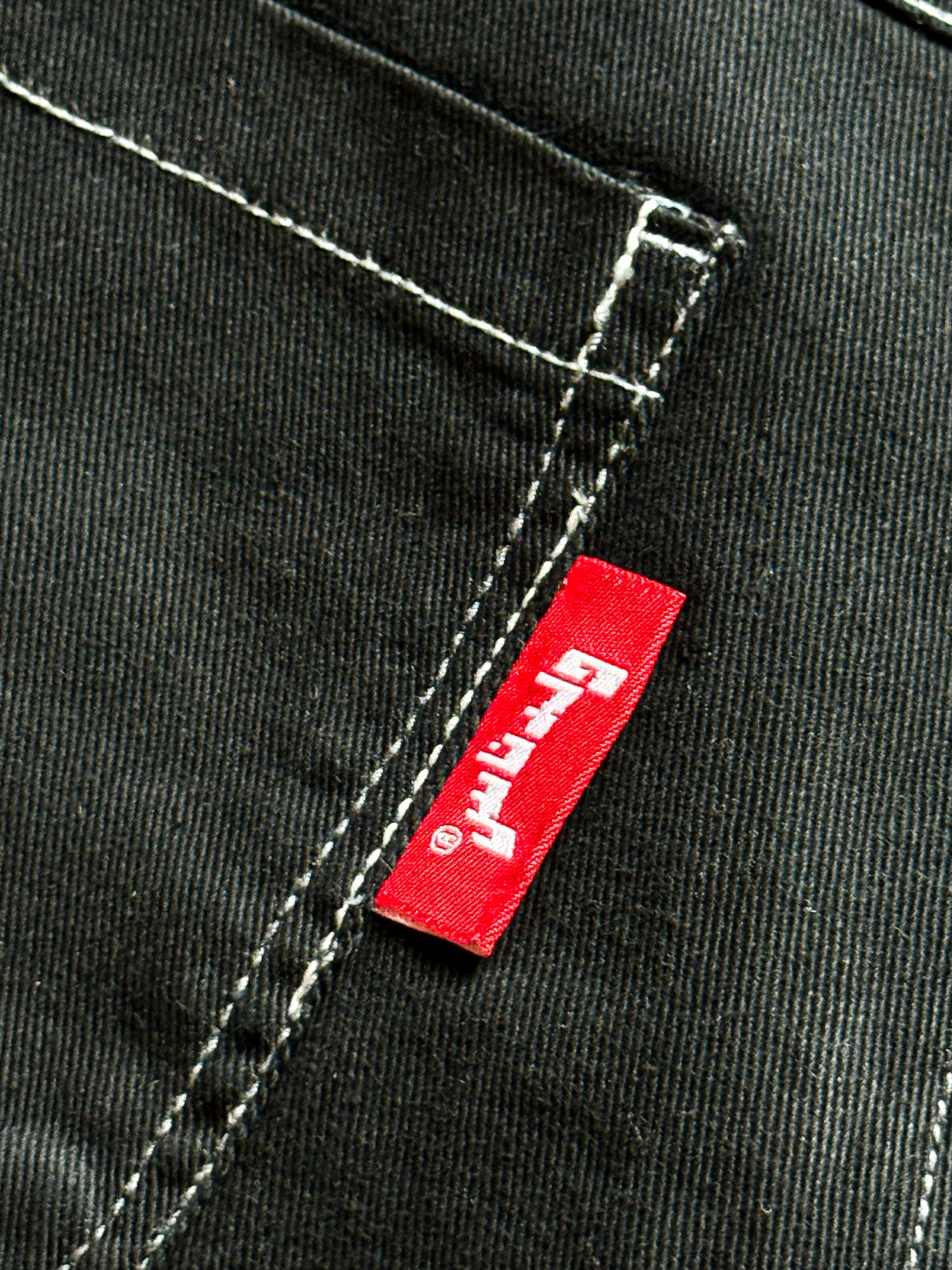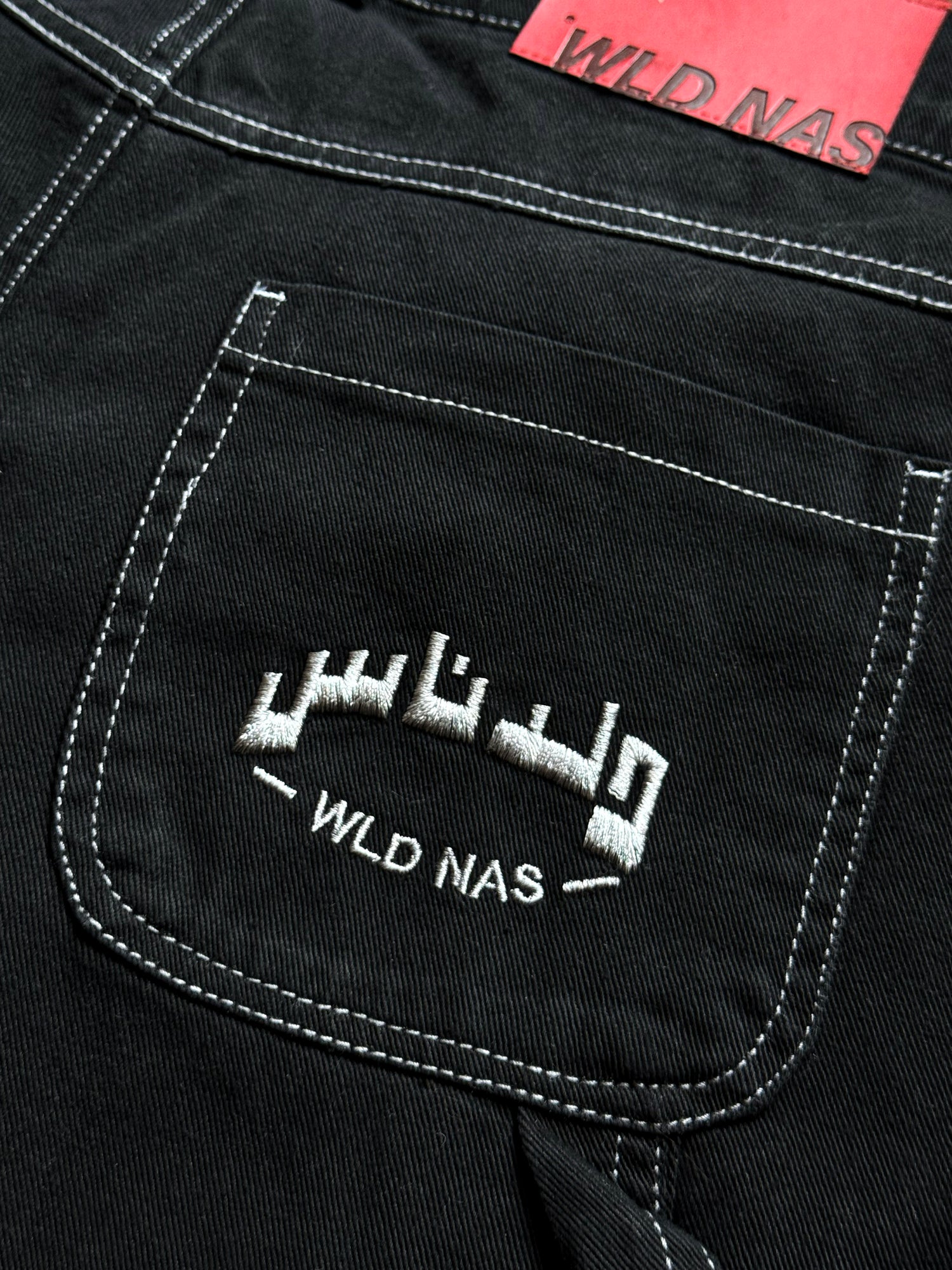 Color. Black with white stitching Embroidery: WLD NAS logo on the back pocket